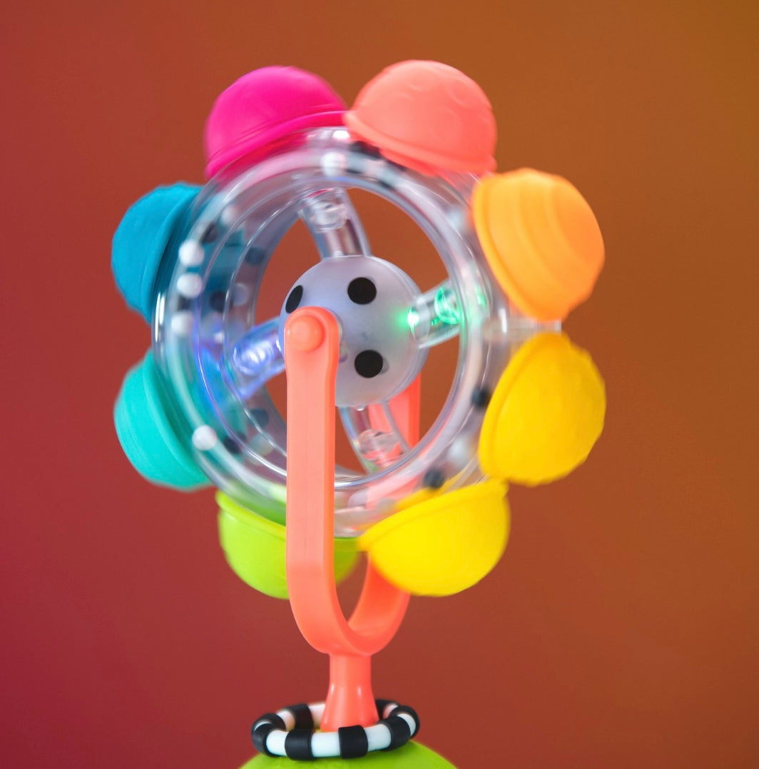 - Colorful, soft touch bumps create rainbow effect when baby spins the wheel.