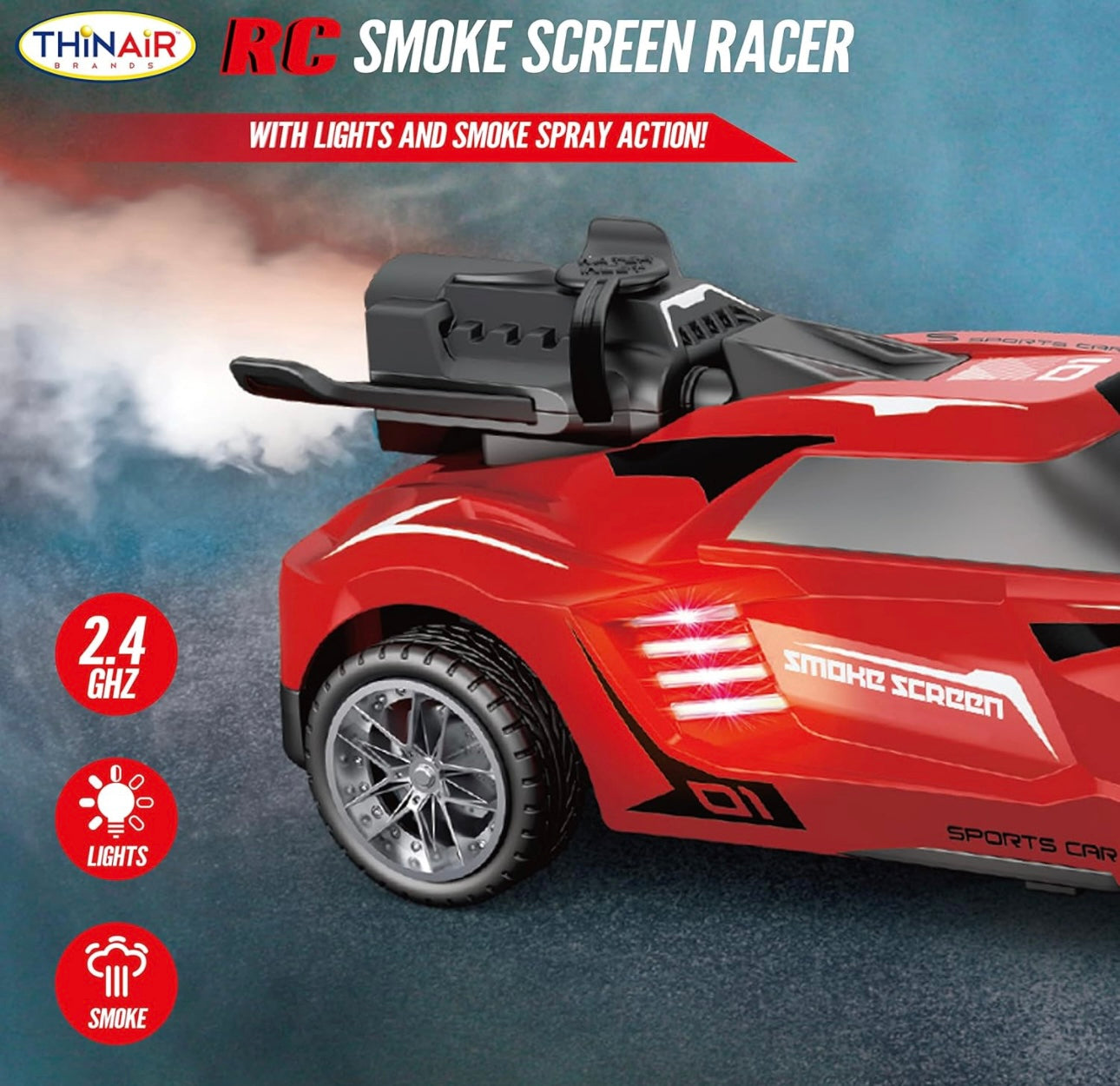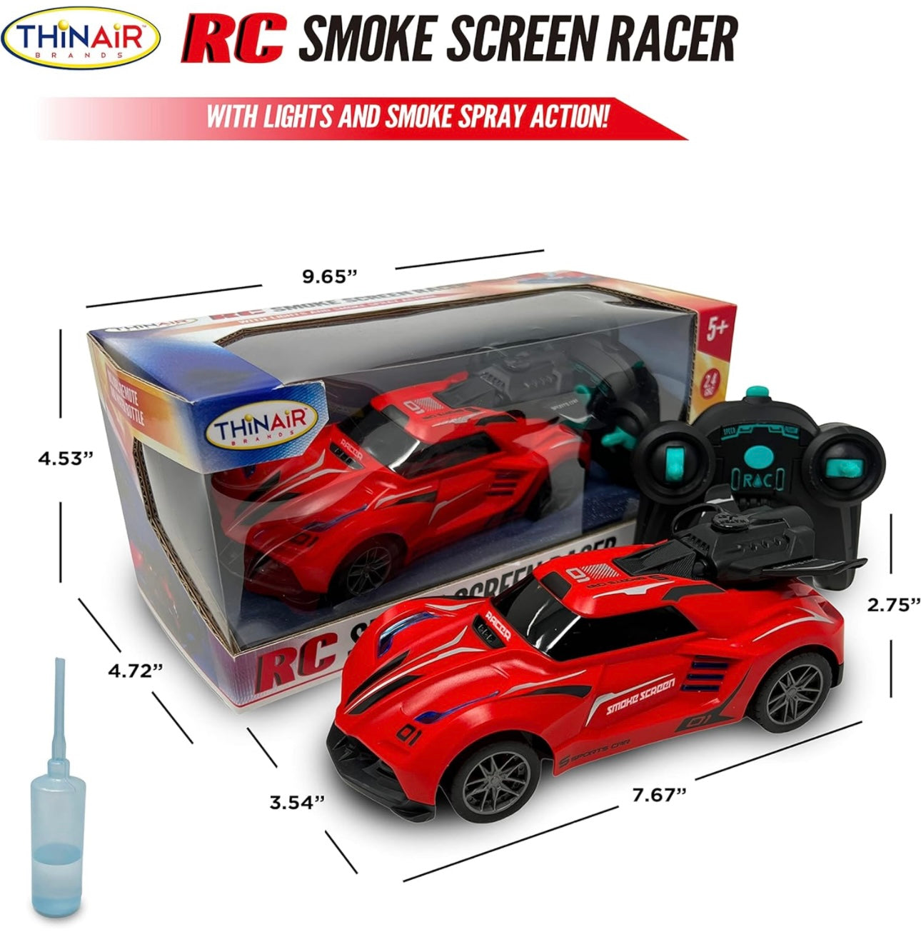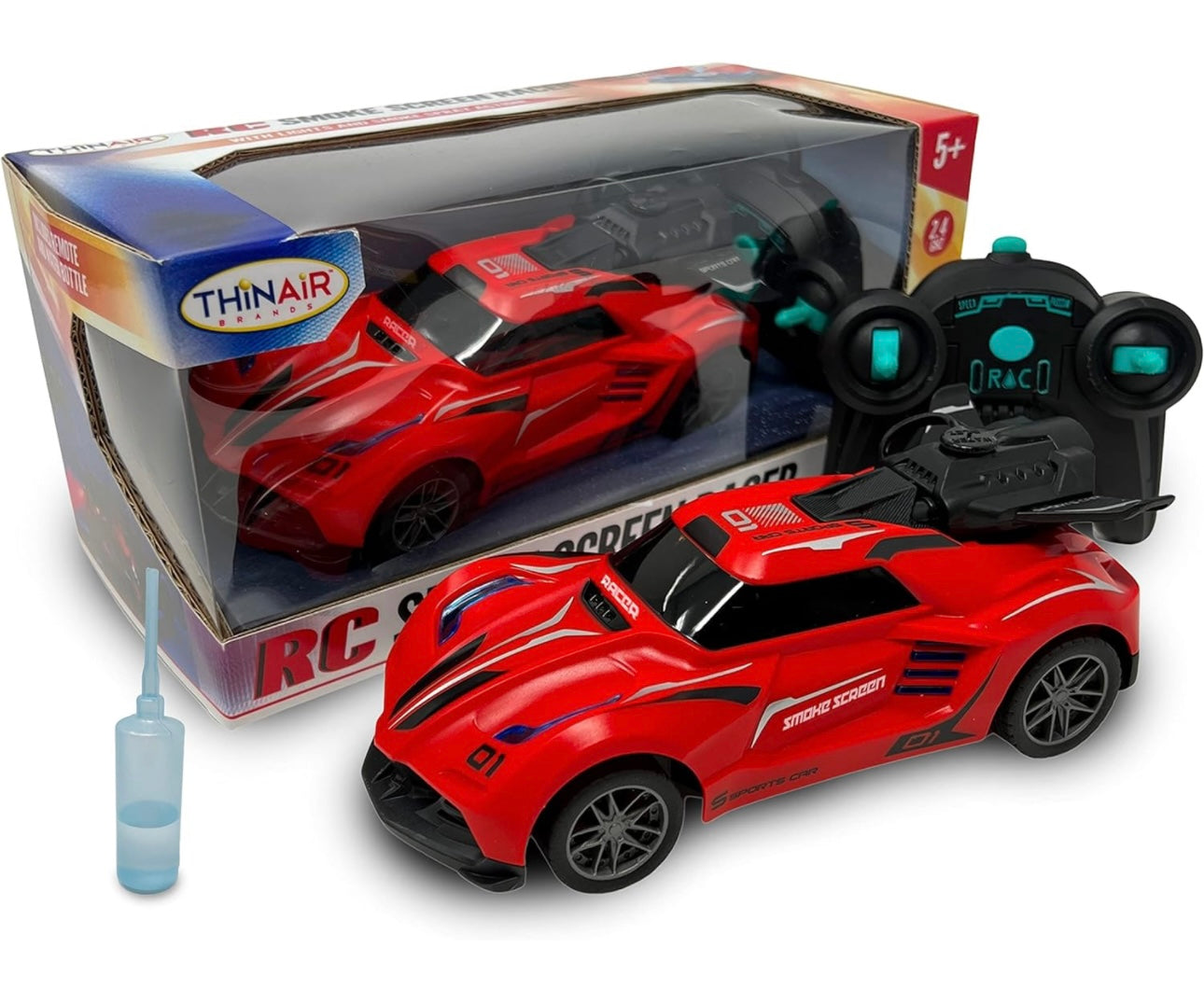 Shift RC play into high gear with this remote control car that streams a smoke trail of water vapor! The whole neighborhood will want to play with this speedy racer. Comes with car, remote controller, and instructions. Requires 6 AA batteries, not included.