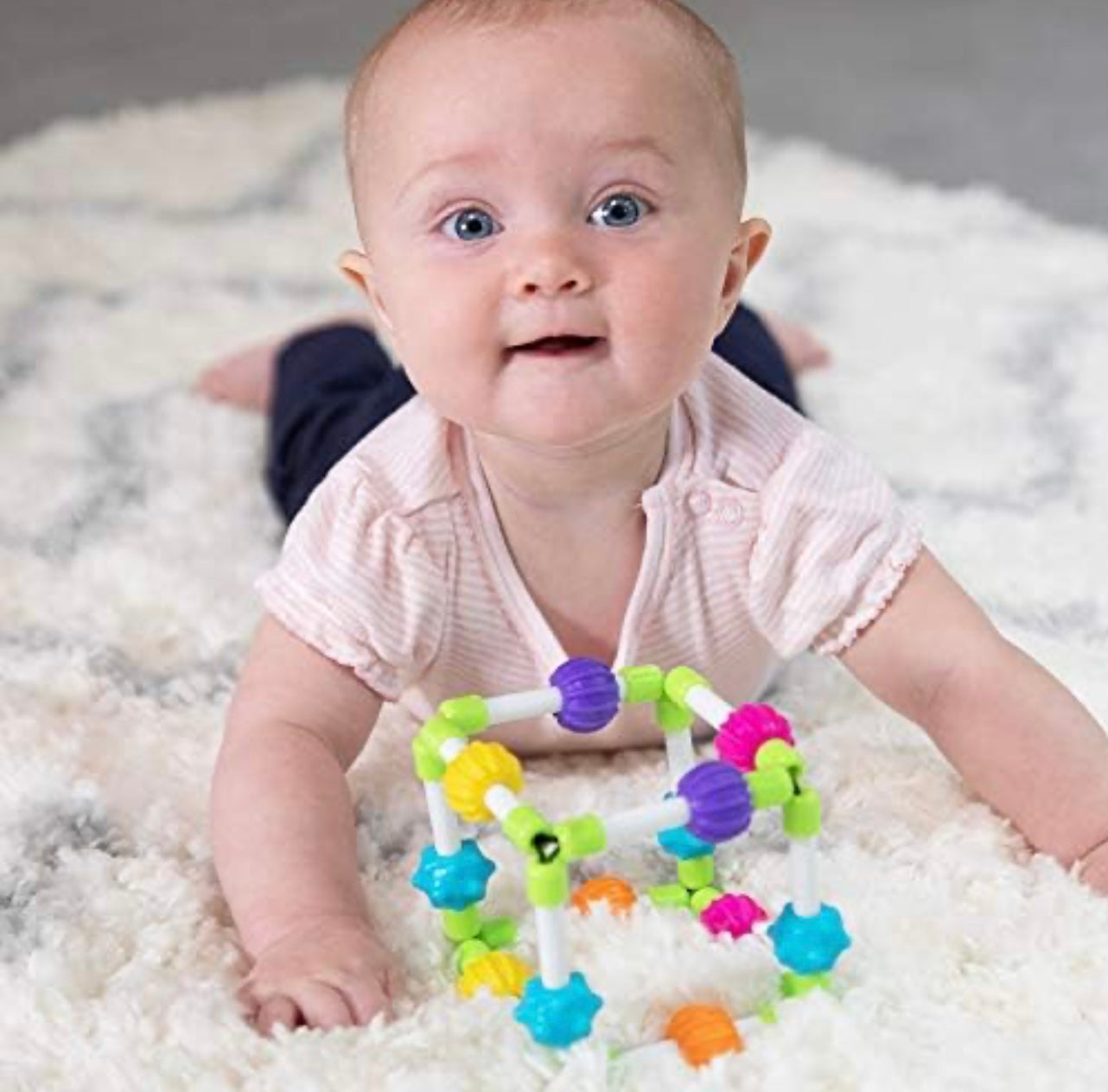 Each edge is connected by elastic bands to allow little hands to bend it and twist it this way and that. Meanwhile, the rubbery textured beads spin and slide for an extra boost of sensory fascination. Little ones just can't stop exploring! Grab their attention and keep them learning with Quubi.
