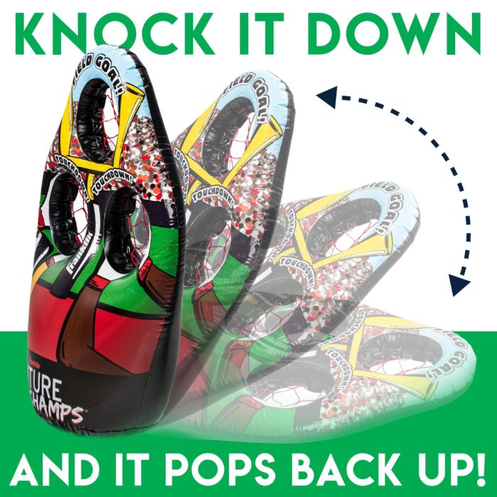 What young football star would "pass" on this? A 45" inflatable target presents 3 netted holes for perfecting passes and kicking field goals. Includes 2 soft footballs and a pump.