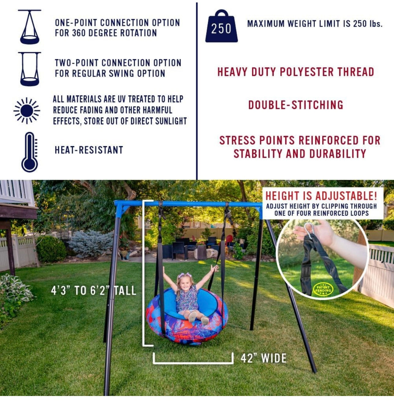 Smaller swing just to show color! Both red/blue and yellow/blue come in 42"!