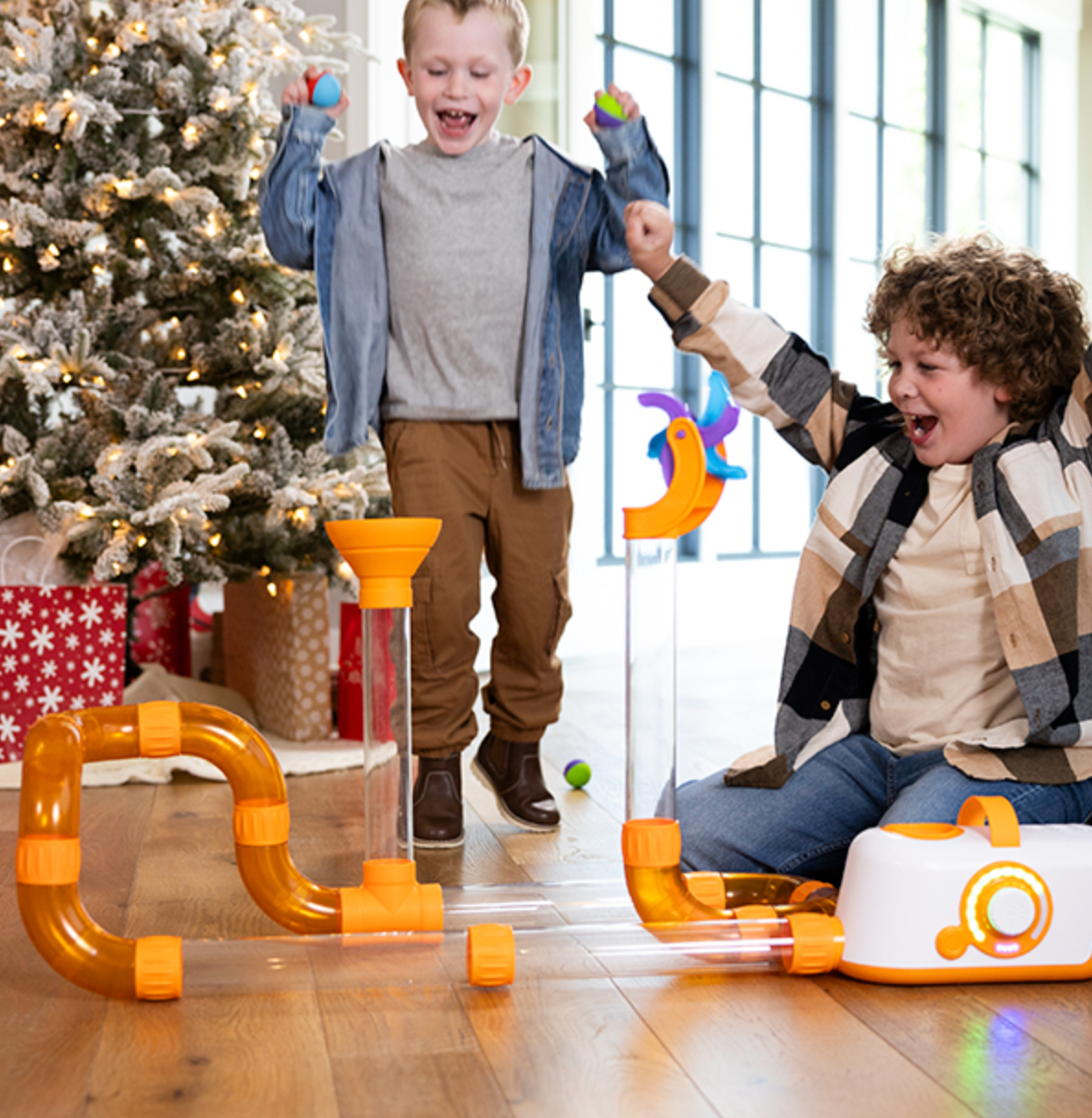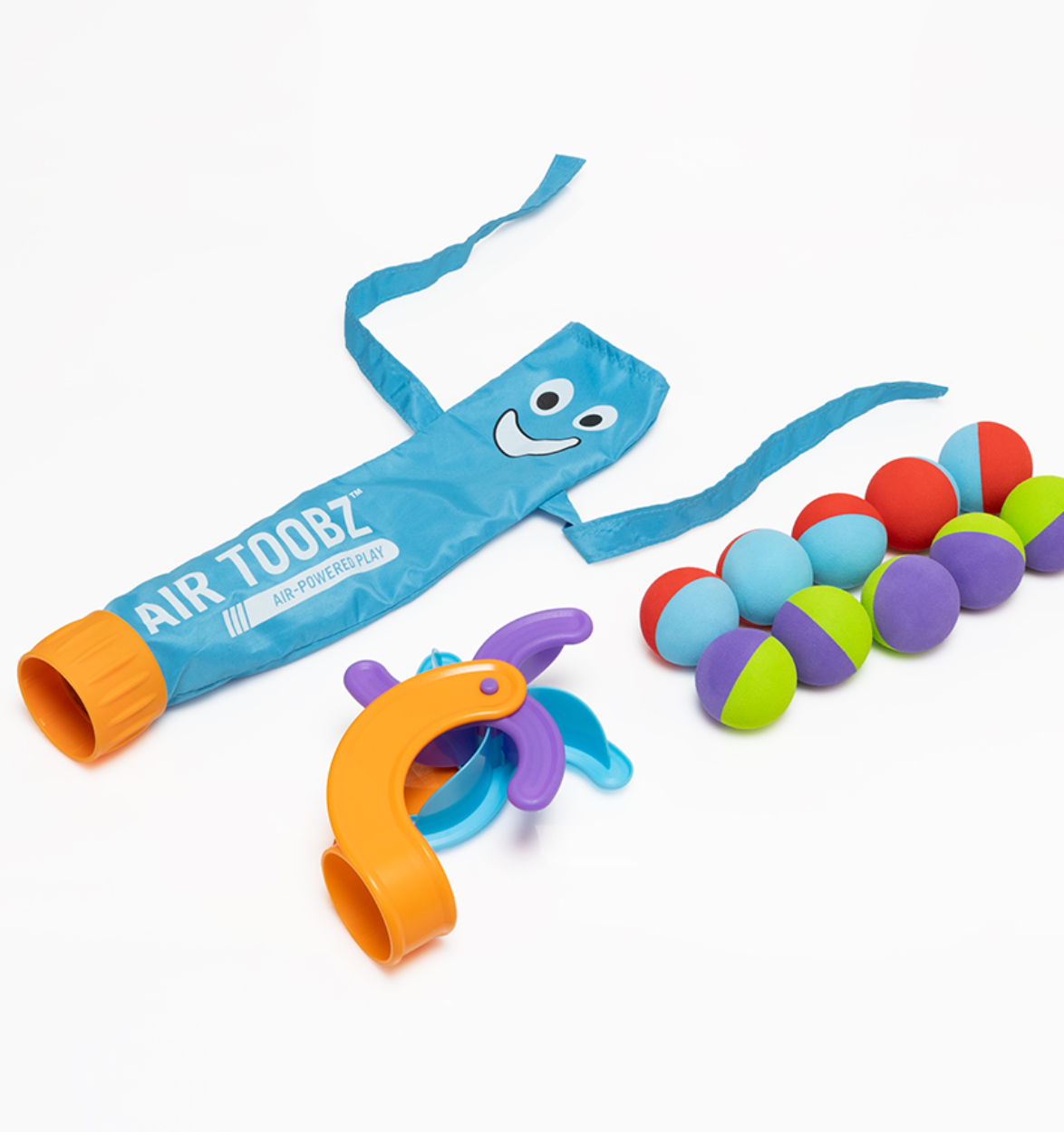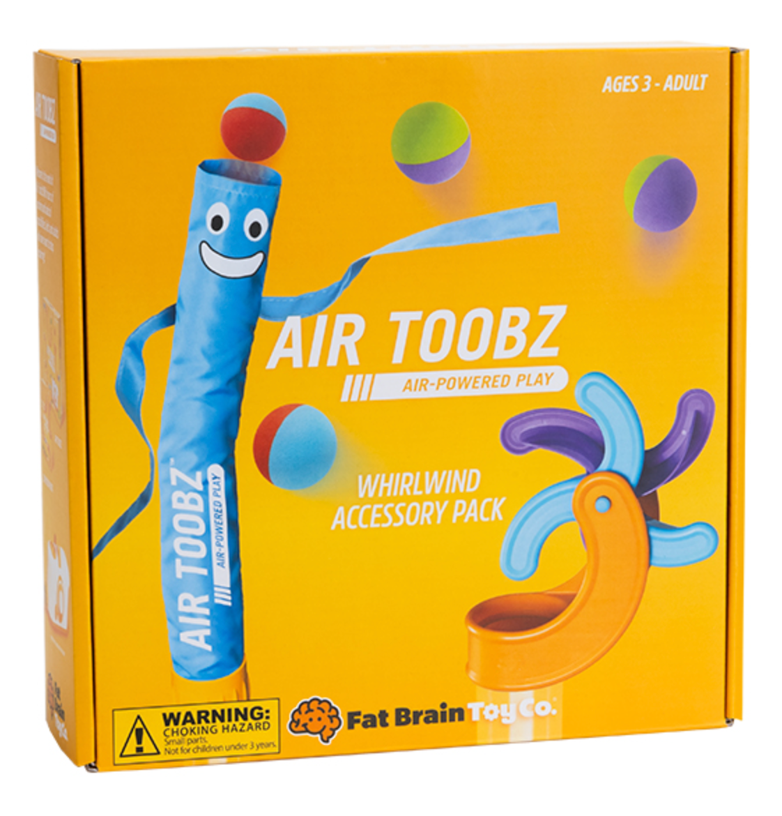 Windy dances wildly with the airflow while Whirly spins to kick the foam balls as they're launched from the tube. Both easily attach to the end of any tube. Plus, the set comes with 10 dual-colored balls for an extra twist of fascination! Play with air and let the giggles fly with the Air Toobz Whirlwind Accessory Pack.