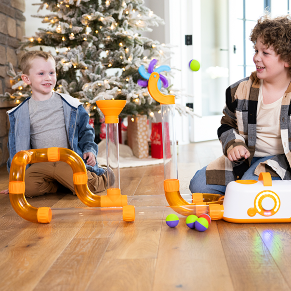 - Whirly spins to kick the balls as they're launched from the tube