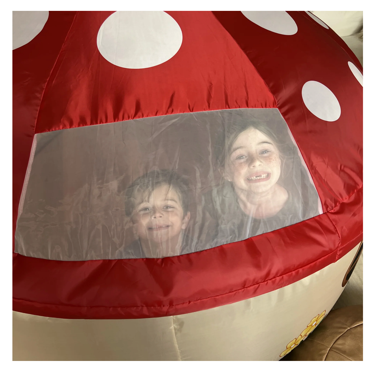 Enter a whimsical wonderland with a Mushroom House AirFort! It's easy to set up, packs away quickly into its storage bag, and is durable enough to last for years of play. Simply attach the fort to a floor fan and watch it magically inflate in less than 30 seconds. At 77" wide and 50" tall, this fantasy forest house is big enough to fit both kids and adults for playdates, movie nights, storytime, or even slumber parties!