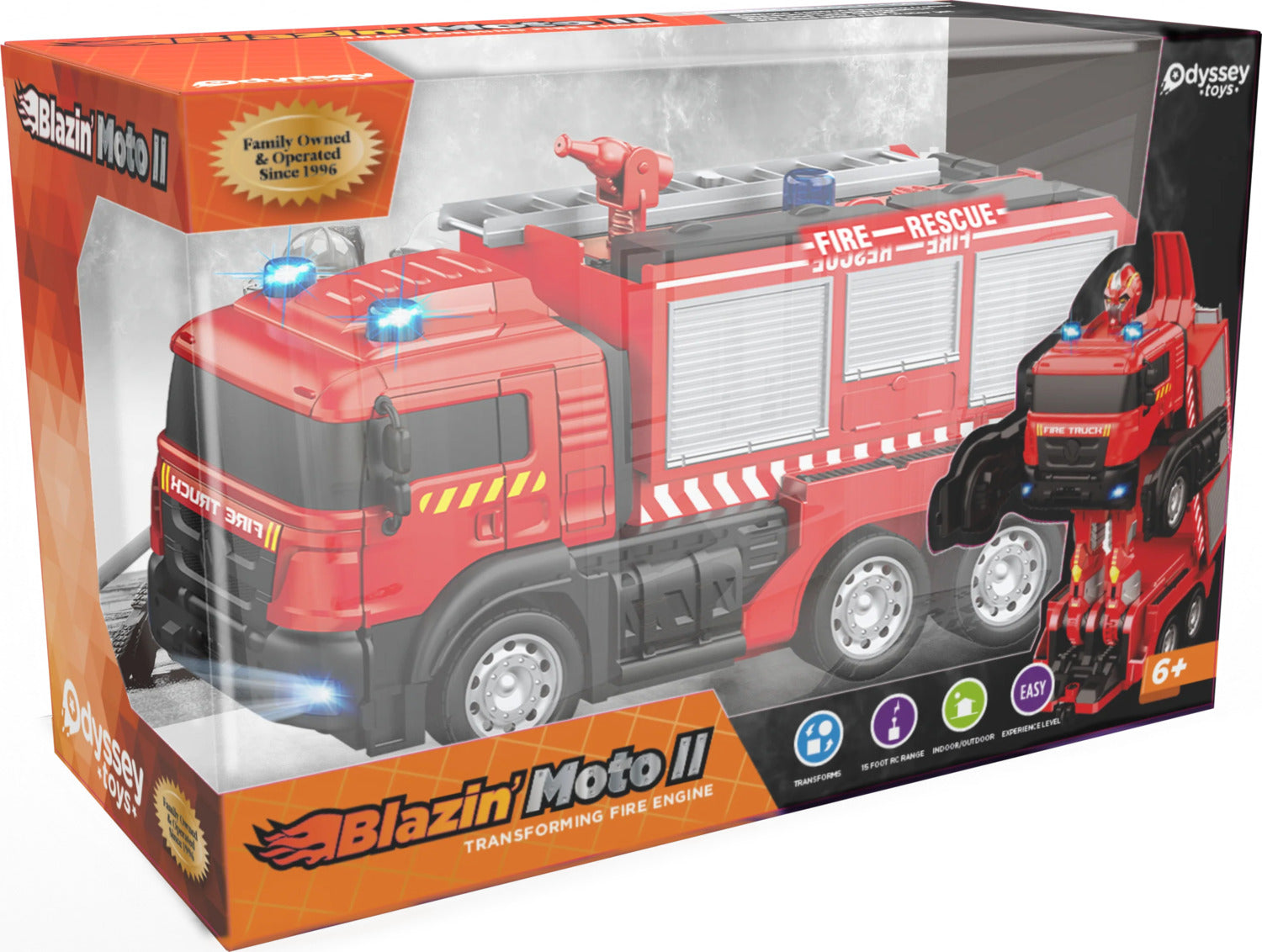 Its time to fight imaginary fires with your robot firefighter. Load the tank with water, transform from robot to truck and push the water hose button for firefighting action!