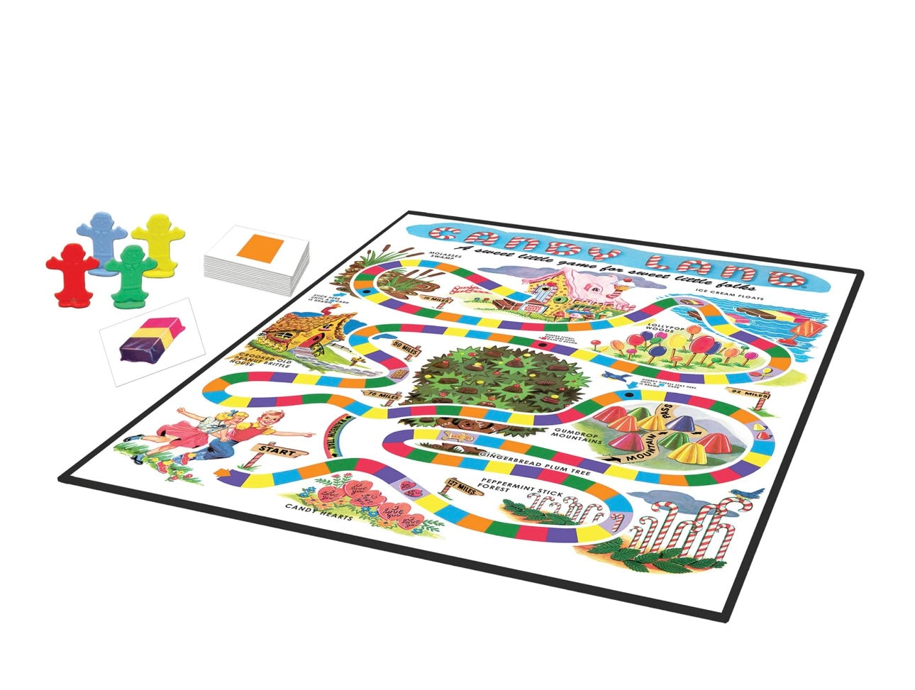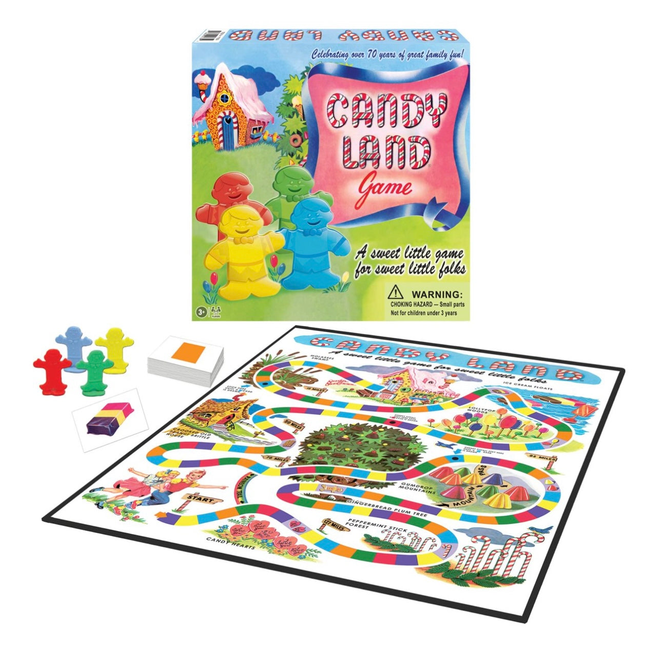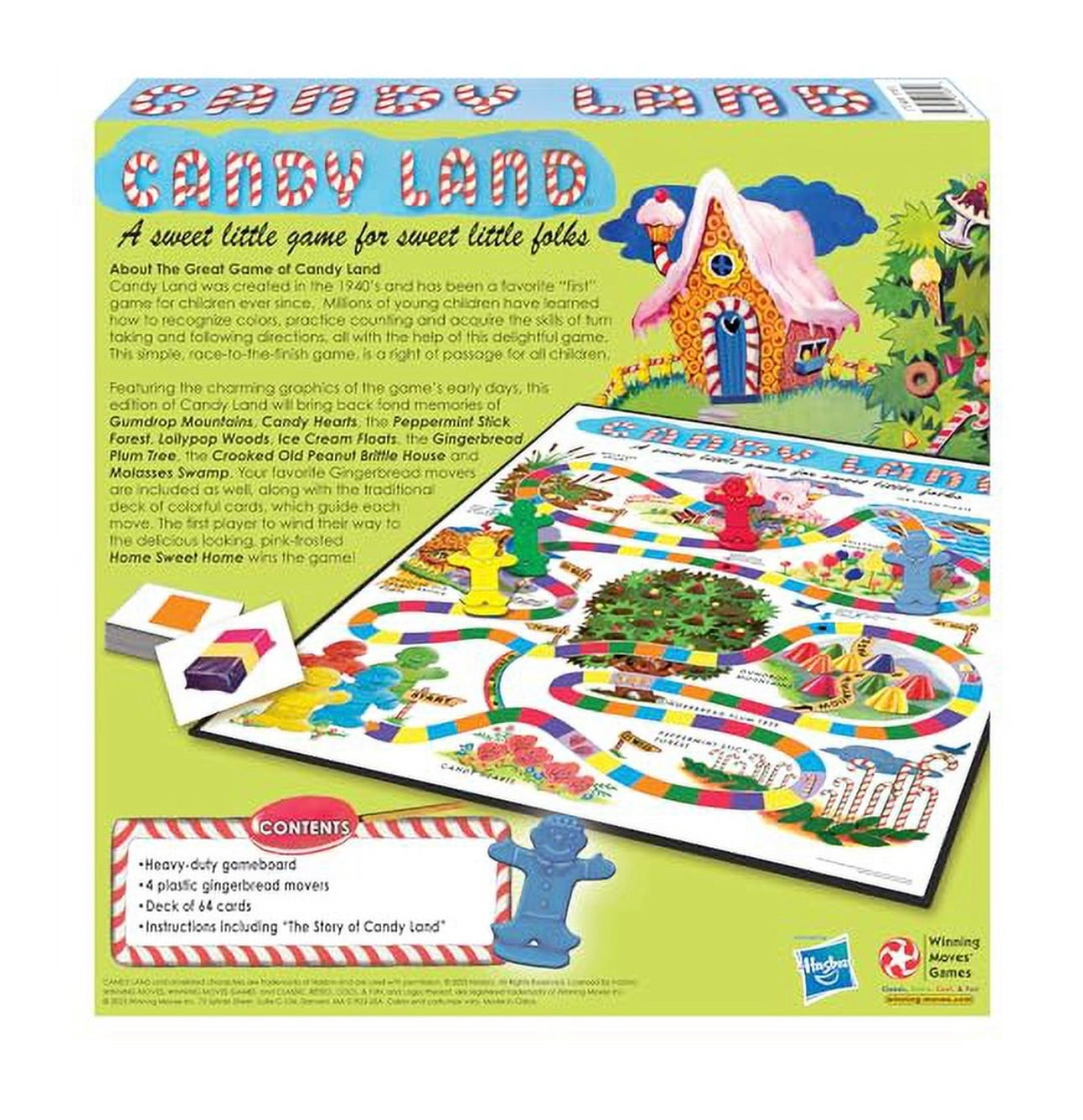 If you loved playing the Candy Land board game as a child, you can enjoy sharing the experience with your little ones and start down the "magical" road to sweet surprises! This adorable version of the classic Candy Land kids game features gingerbread men as movers, colored cards, and bright illustrations, with different destinations like Cookie Commons and the chunky Chocolate Mountain. Players choose their cards, move their pawns, and let their imaginations soar as they make their way to the castle to win! No reading is required to play this engaging family board game for kids; instead preschoolers can practice color matching. Kindergarten games like the Candy Land game are fun games for classrooms, playdates or Family Game Night. Indoor games for kids make great gifts for 3 year old girls and boys and up.