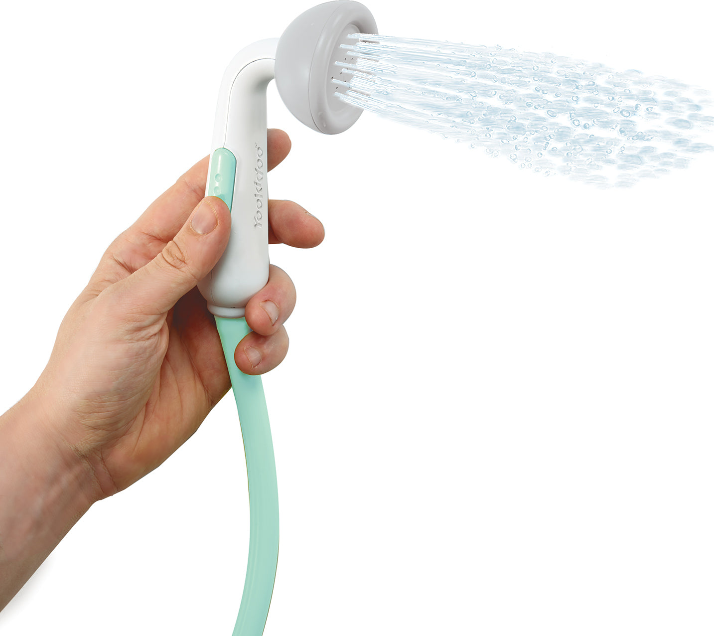 - The shower head requires only one hand to operate and start and pause the flow of water, so the other hand is free to care for your baby.