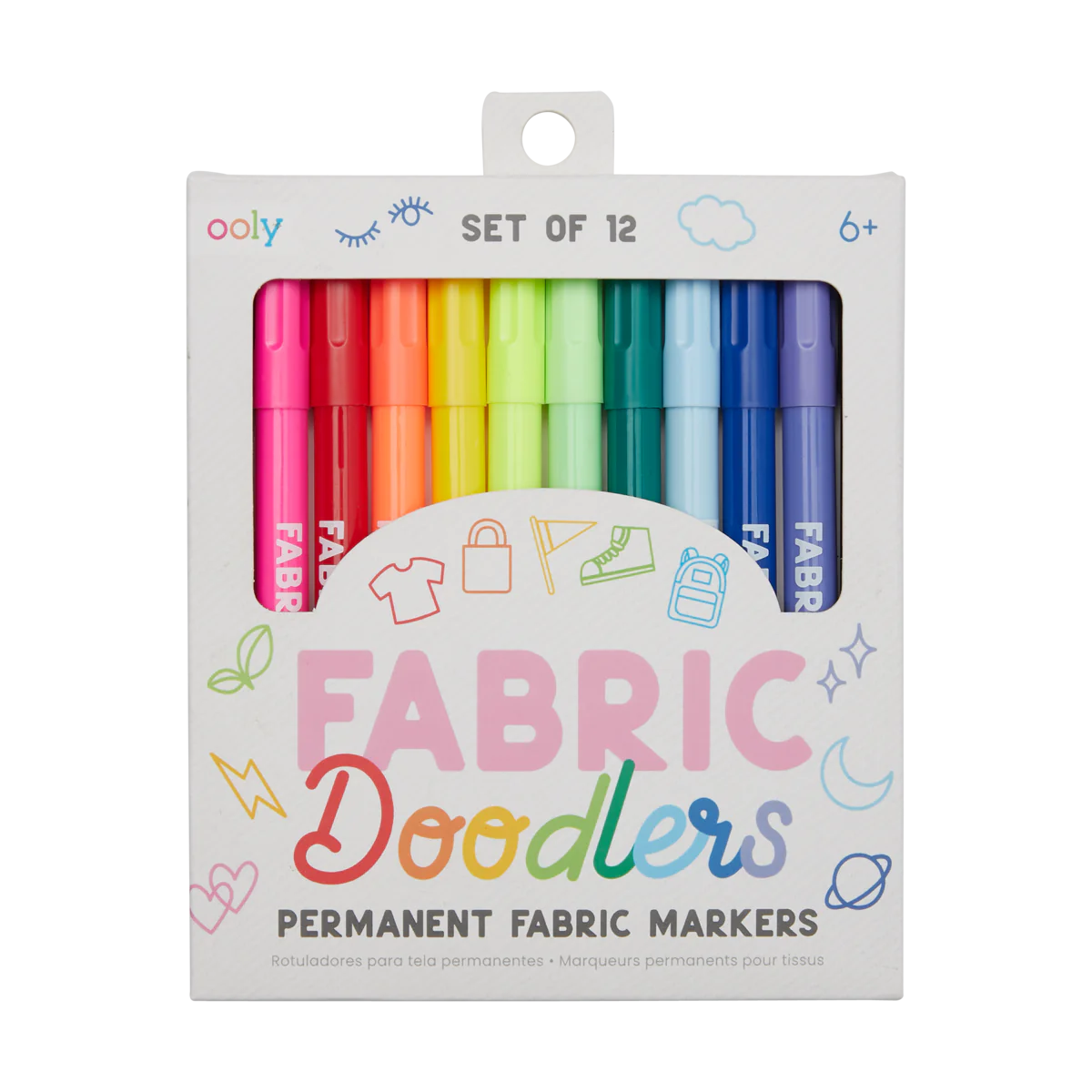 Isn't it time you wear your creativity on your sleeve? With OOLY's set of Fabric Doodlers Markers you can create your very own line of one-of-a-kind pieces. These permanent fabric markers can be used on most fabrics, including accessories like sneakers and backpacks. Create a unique t-shirt for a friend, or add some flair to that old denim jacket. When it comes to these fabric markers, the possibilities are truly endless! 12 different colors are included in the set. So what designs are on trend this season? Yours, of course!
