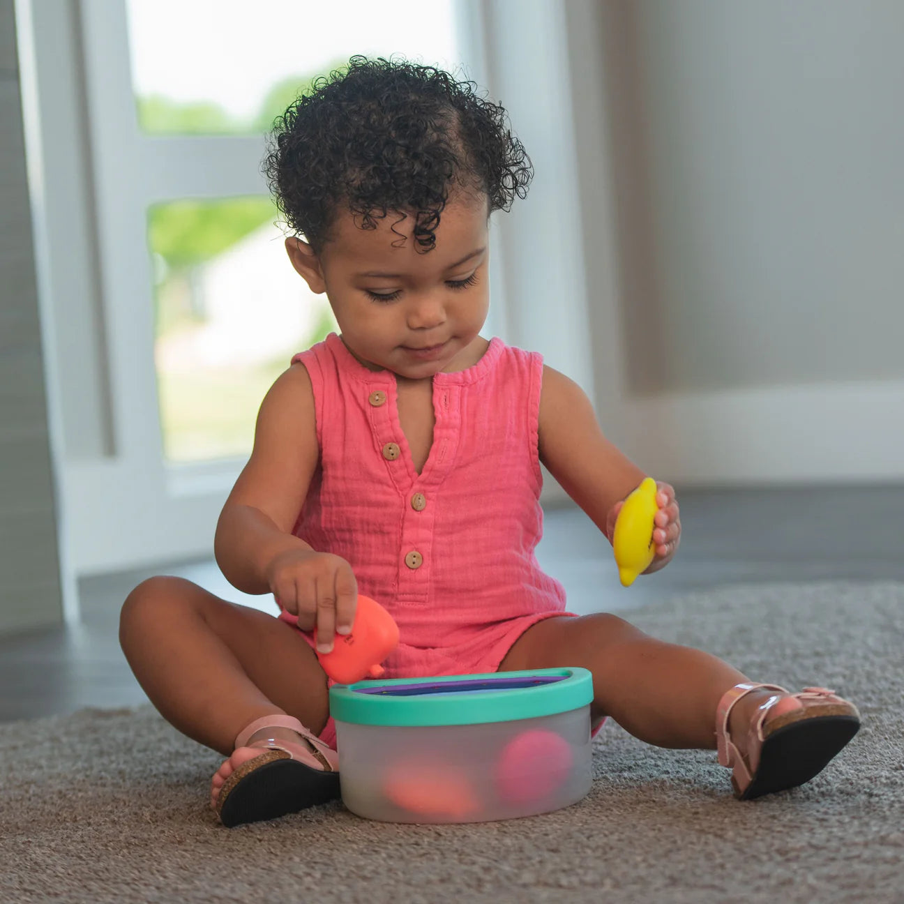 - Use the container without the lid for put and take, a developmentally appropriate activity for baby.