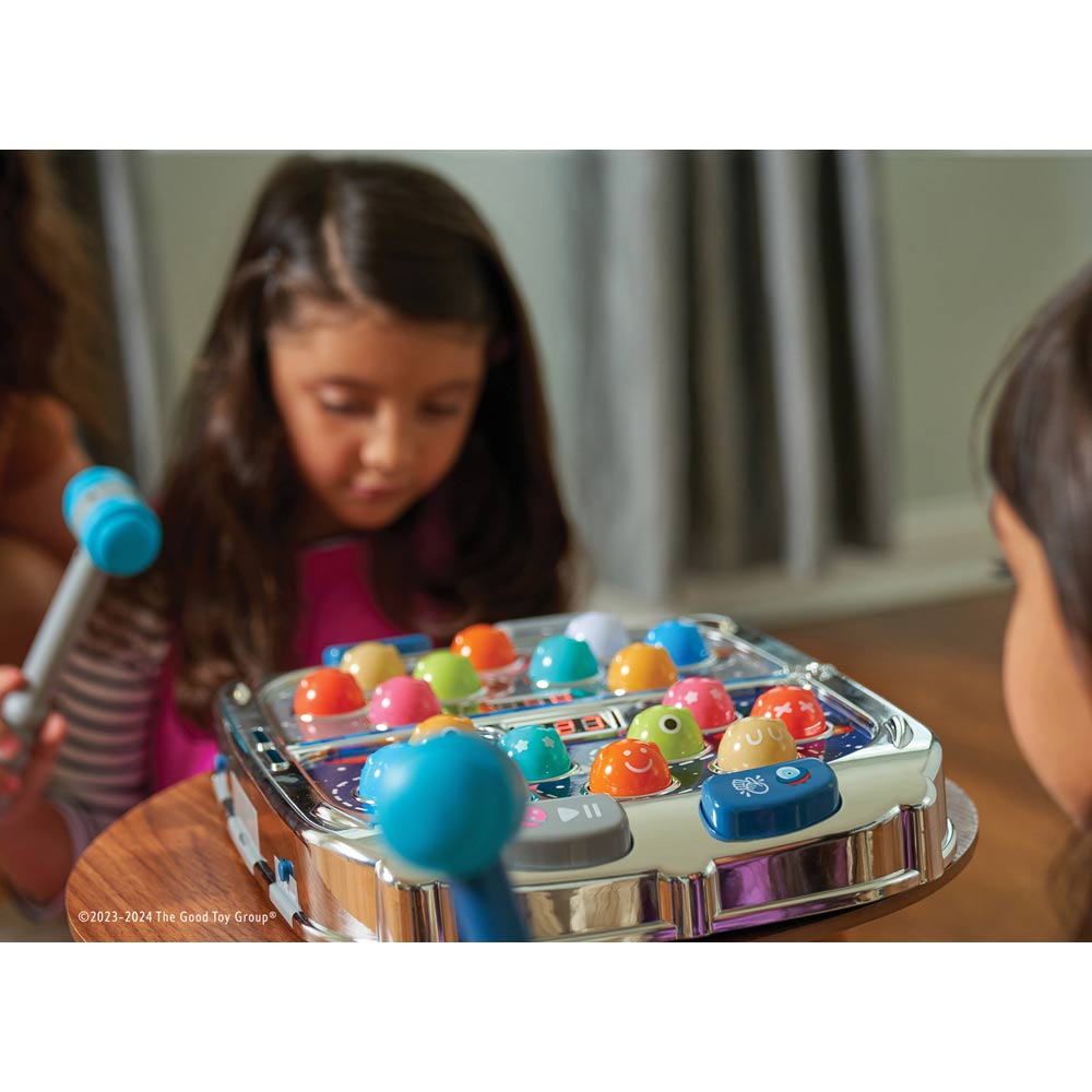 Embrace 80's nostalgia with a blast from the past: Whack Attack Space Moles brings retro arcade games to you! Kids release extra energy as they follow the flashing lights to bash the heads of colorful funny-faced moles. There are 36 levels of play in solo or 2-player mode, and LCD scoring keeps track of the arcade champion against a soundscape of music effects. For extra retro vibes, switch to coin mode! Great after school or pre-dinner entertainment. Requires 4 AA batteries, not included.