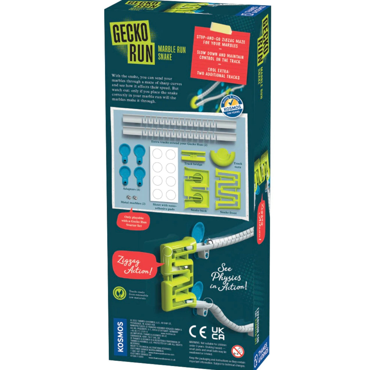 With the Gecko Run: Snake Expansion Pack, you can send your marbles through a maze of sharp curves and see how it affects their speed. But watch out: only if you place the snake correctly in your marble run will the marbles make it through!