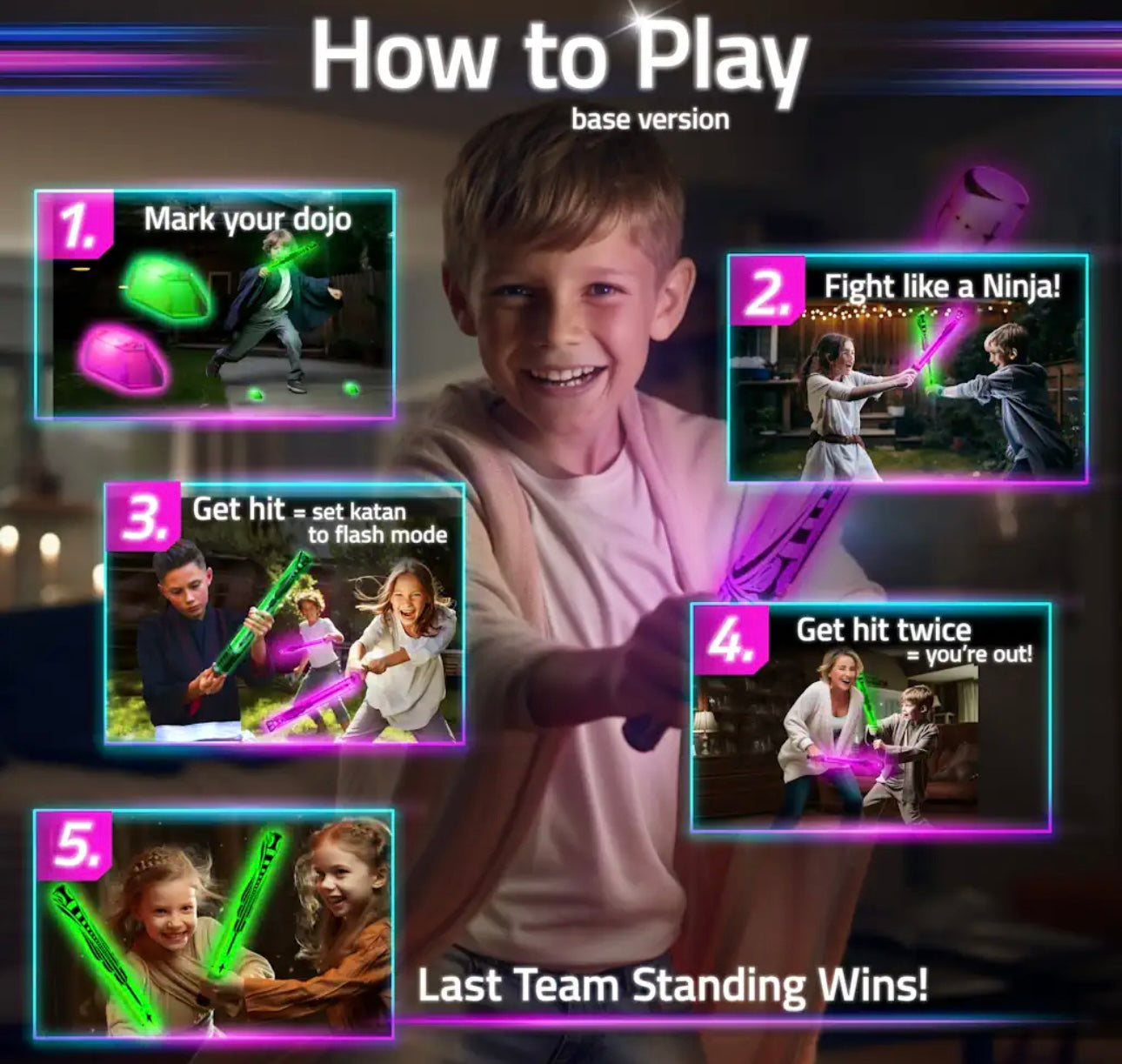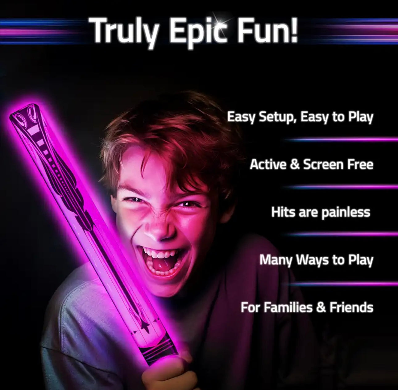 - BATTLE LIKE A NINJA SAMURAI! Family, friends and neighbors play organized sword fighting games using (harmless!) glowing foam weapons; a fun alternative to plastic swords, Ninja toys, foam guns, kickball, dodgeball, yard darts and laser tag