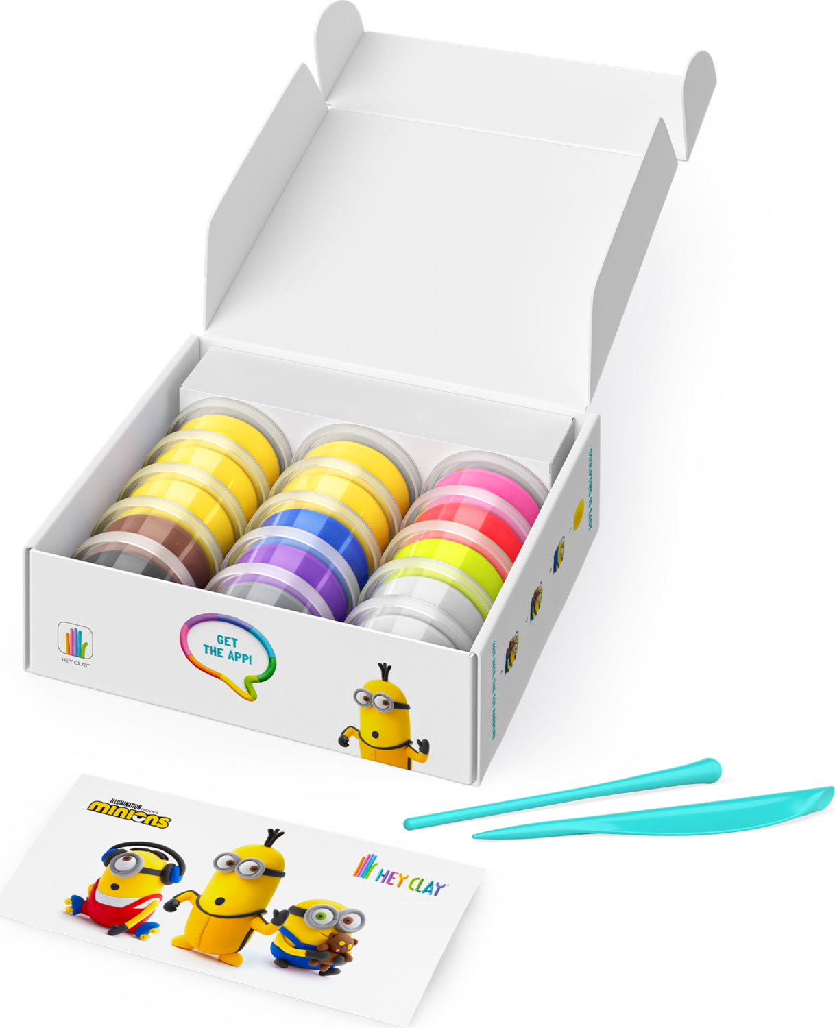 Spheres, cylinders, facial features, textures, and more... Kids learn real sculpting techniques without even realizing it! Bring your own villainy adventures to life with the Hey Clay Minions set. Hey Clay Minions High-quality clay and interactive app for molding 6 Minion figurines Encourages fine motor skills, spatial reasoning, creativity.