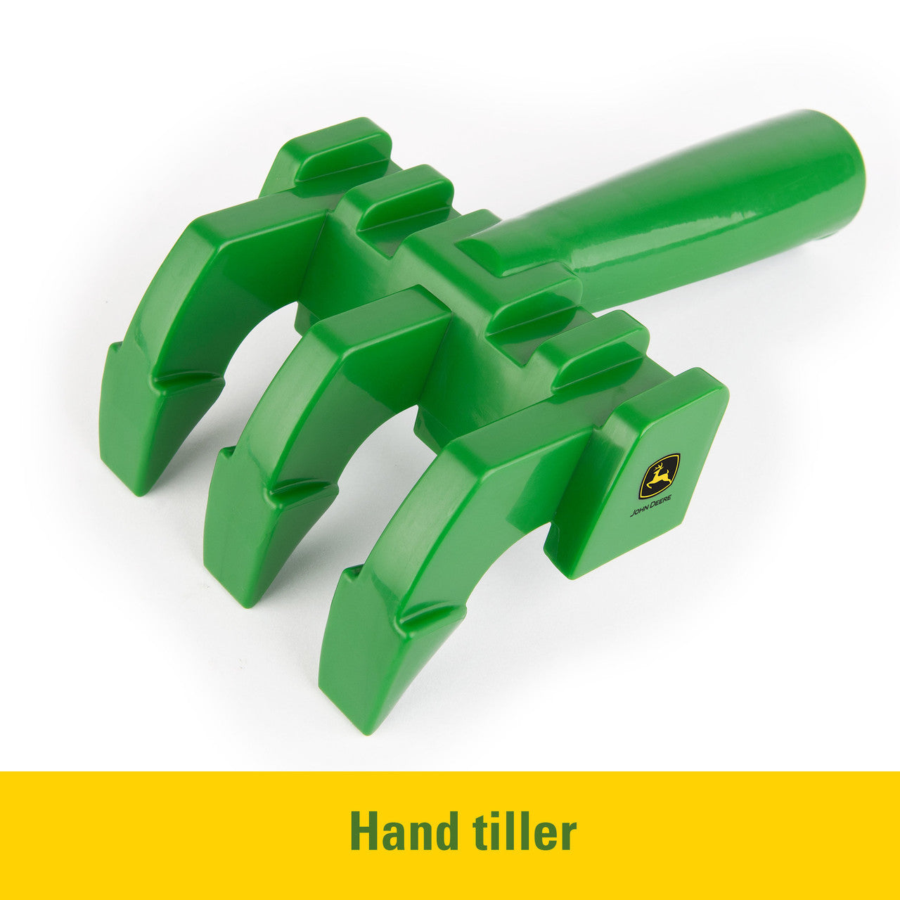 The John Deere Big Scoop Dump Truck is sand box tough and ready for loads of adventure. This 4-piece set includes three John Deere sand tools; a scoop with sifter, hand tiller and a tractor wheel pattern roller. The 15" dump truck features an easy-grip handle to tilt big loads out of the dump bed. Get ready for fun in the sun and sand with Big Scoop! Ages 3 years and up. Produced by TOMY and officially licensed by John Deere.