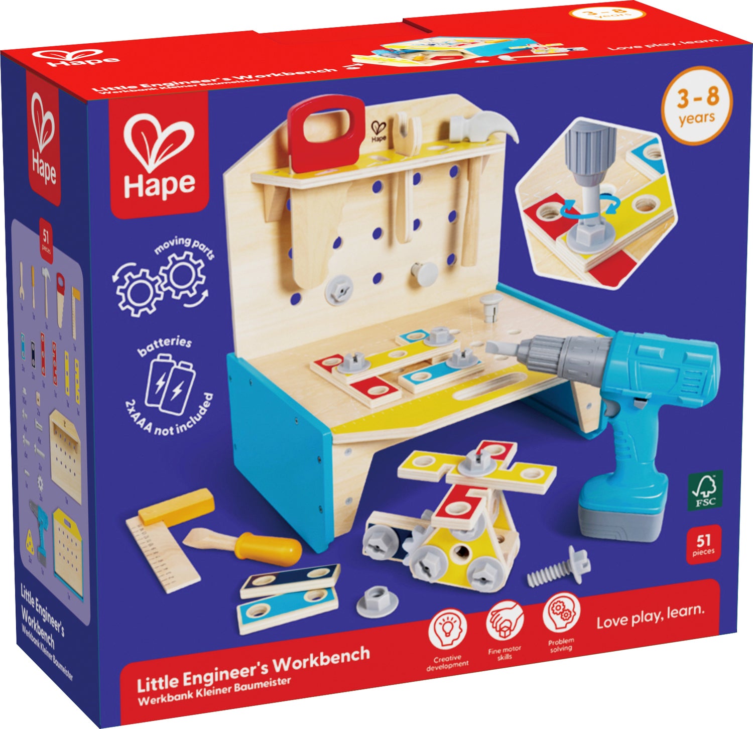- S.T.E.A.M. DEVELOPMENT: This toy workbench helps children develop various skills through elements of Science, Technology, Engineering, Arts and Mathematics.