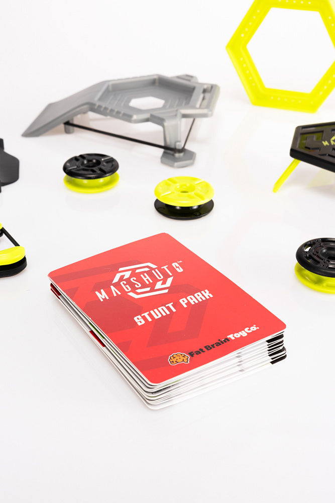 Ricocheting, rebounding, flipping, colliding, flying, tunnel-gliding, and more... Take on the 15 included challenges. Invent your own stunts. Combine with other Magshuto sets and incorporate your environment.