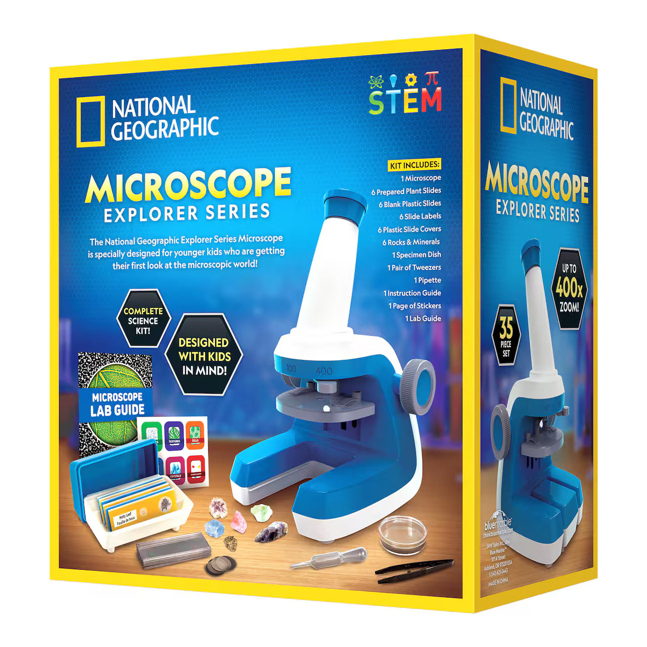 - Includes prepared slides, blank slides, tweezers and learning guide