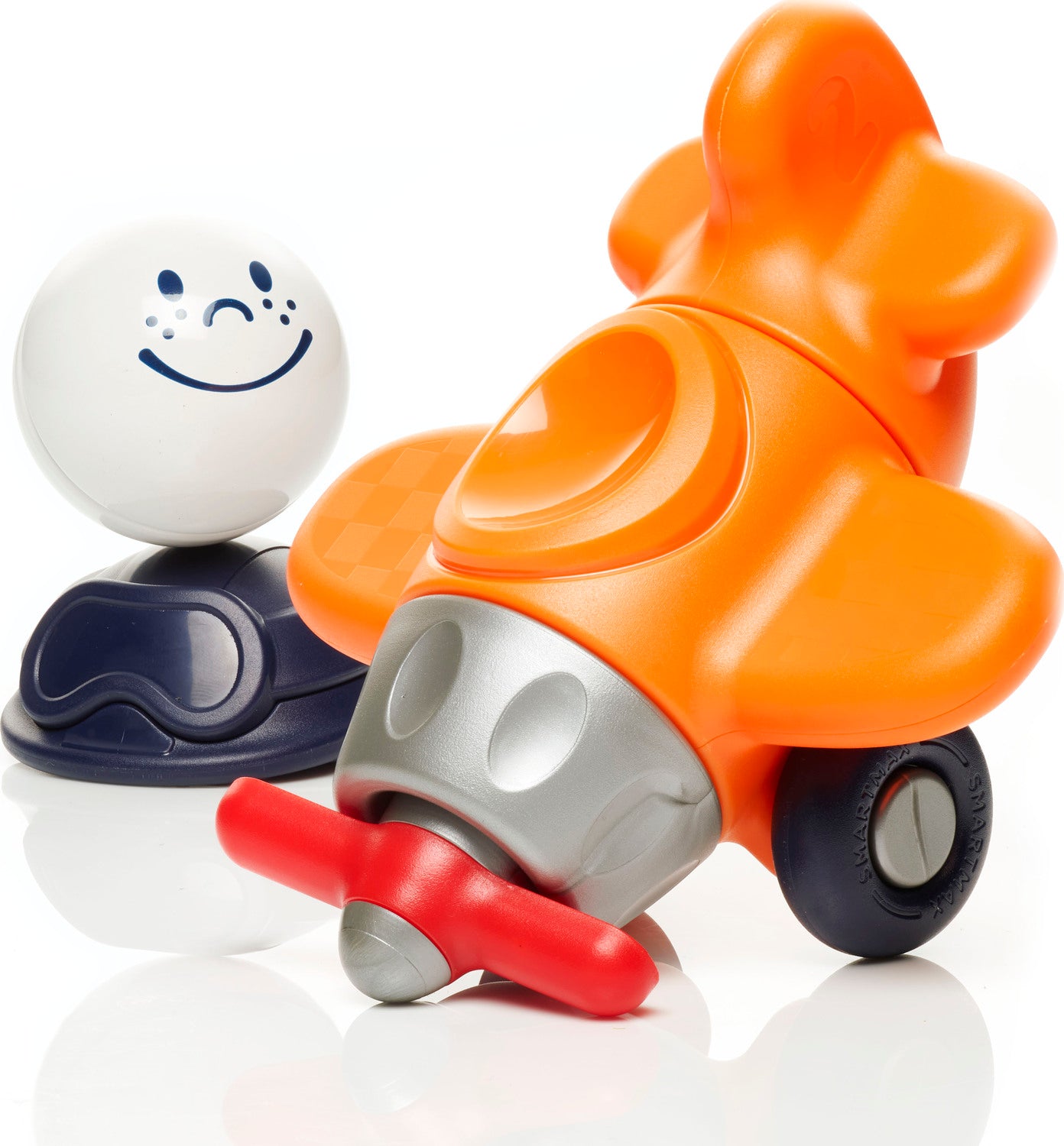 My First Plane is a magnetic play set that seamlessly integrates into the SmartMax universe. Build your plane and let your pilot fly or combine your set with other SmartMax products and create unique and cool looking vehicles. The different parts of the plane magnetically connect to a SmartMax bar. My First Plane sparks imagination, fine motor skills and encourages hand-eye coordination.