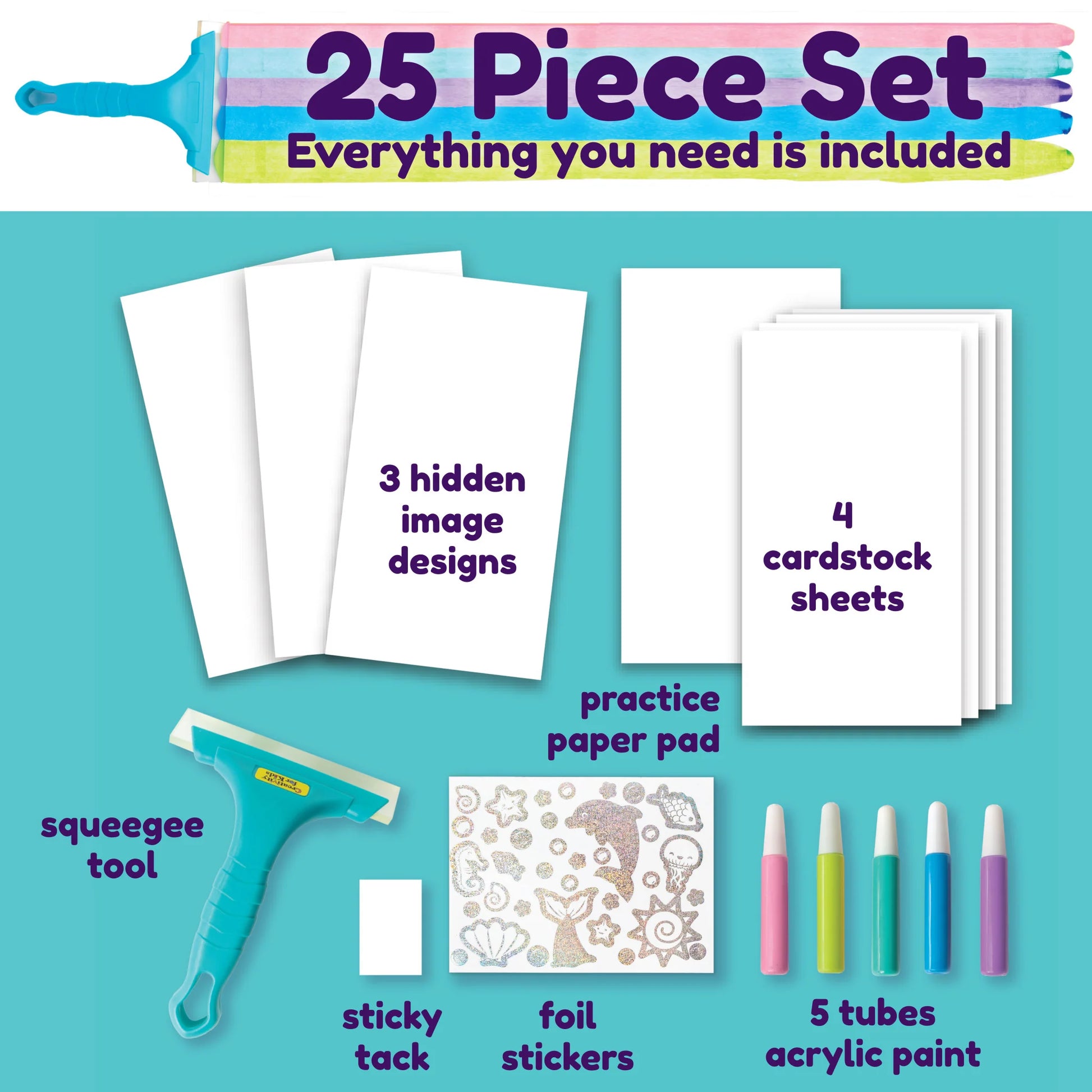 Dot, squeegee and reveal hidden designs with this 25-piece set.