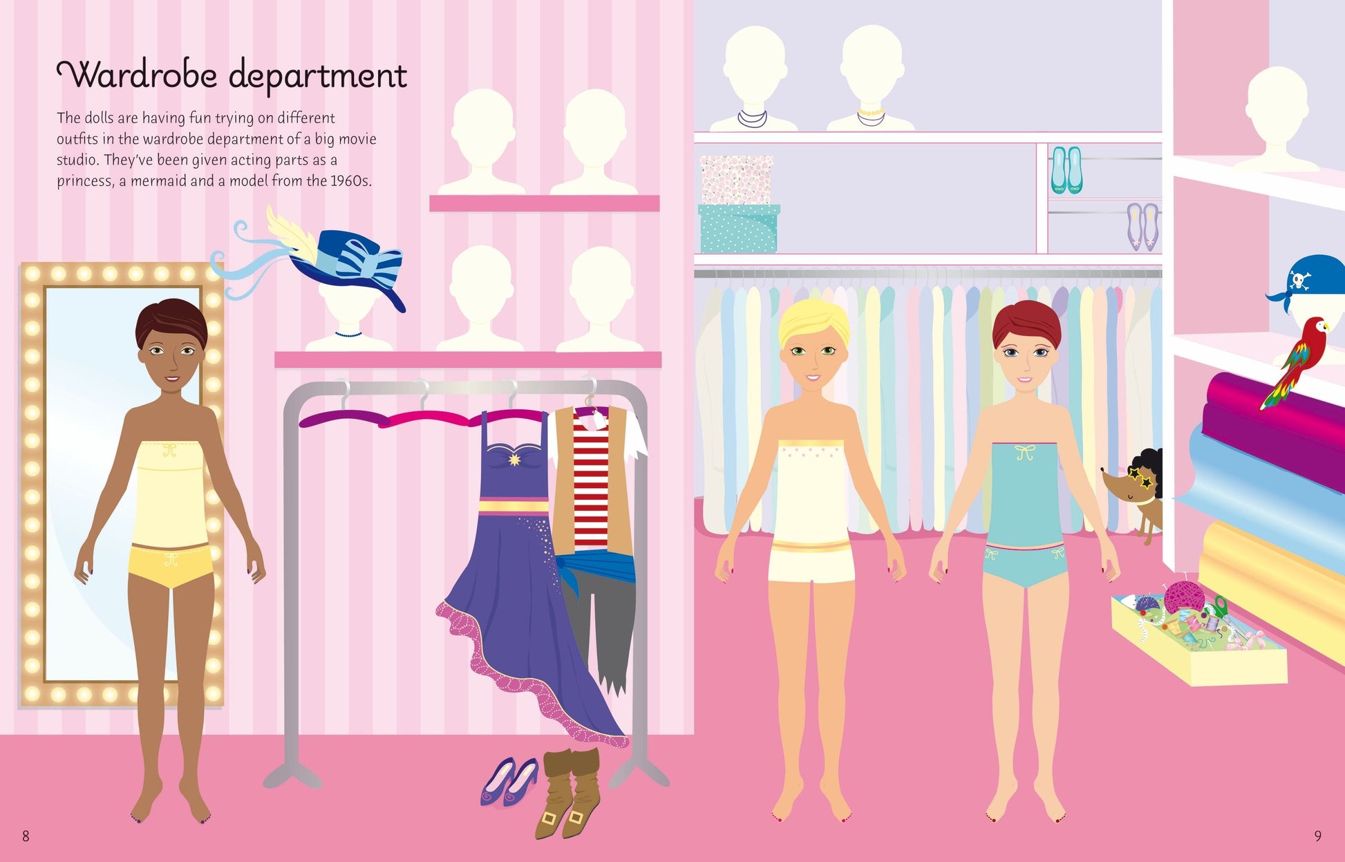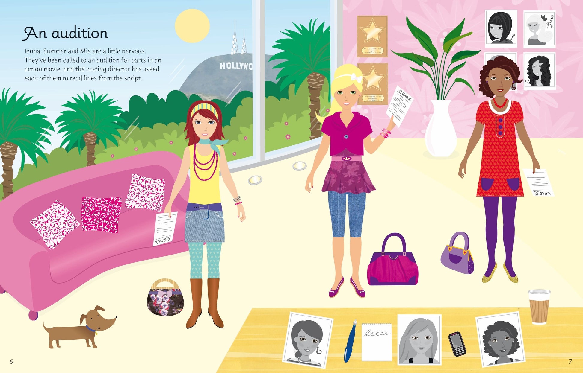 Best friends Mia, Summer and Jenna are three actors who love performing in front of a movie camera. Use the stickers to dress the dolls for a photo shoot, an audition, an action movie, a glamorous awards ceremony and much more. As well as the dolls' outfits and their accessories, there are props and other stickers to add to the pages.