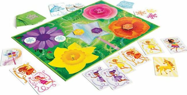 INCLUDES: Game board, 4 jewel tokens, 13 snowflake tokens, 44 snowstorm cards and 57 fairy garden cards.