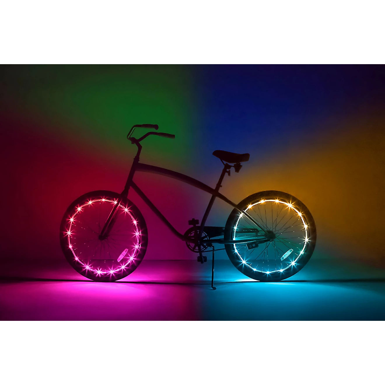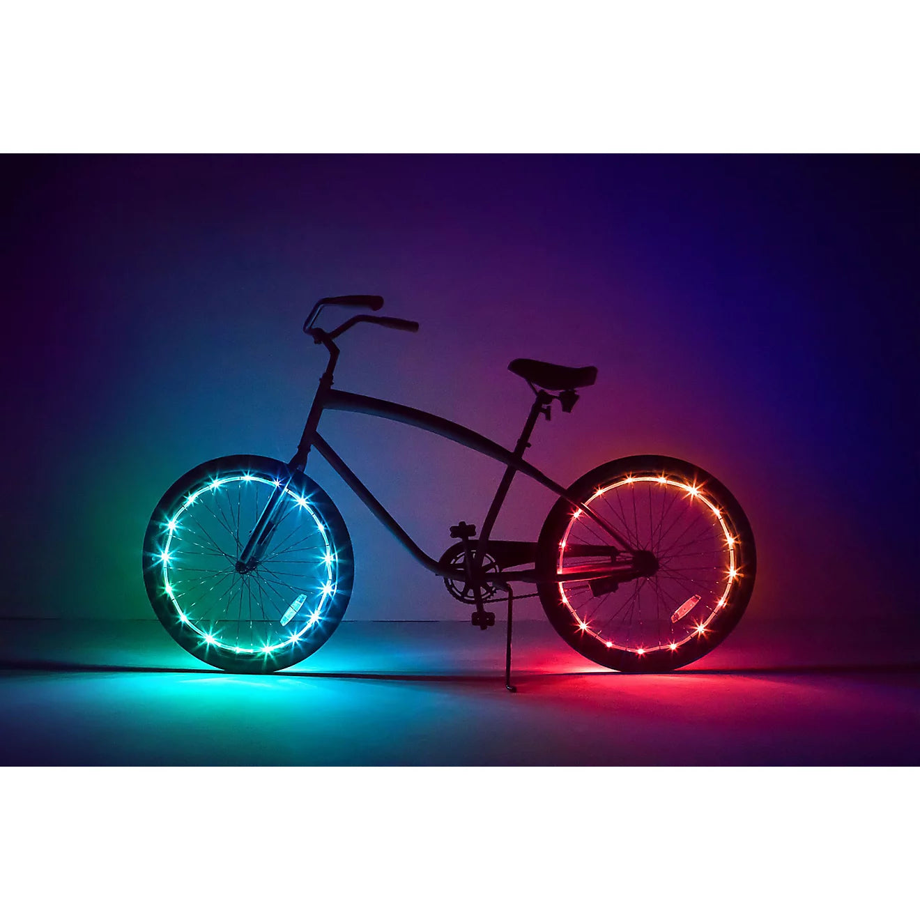 Introducing WheelBrightz, the revolutionary LED Bike Wheel Lights that add a dazzling touch of color to your bicycle. Brightz' flagship product uses 20 micro-LED lights to create a brilliant ring of illumination that is sure to turn heads and grab attention no matter where you go. With an array of vibrant hues, you can mix and match colors to create your own unique look or keep it sleek with just one color! Don’t settle for boring bike wheel lighting – transform your ride with WheelBrightz!