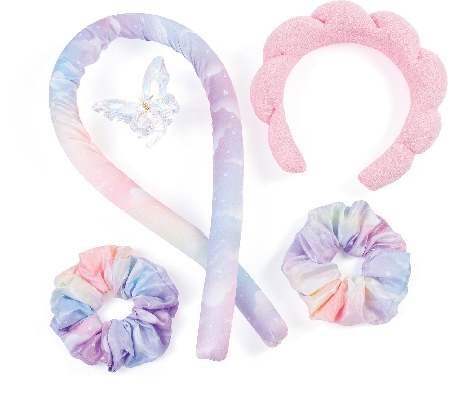 Help tweens hop on the TikTok trend of gorgeous curls without any heat or hair damage! They can easily set the heatless curler using the included scrunchies, relax in front of the TV, do homework, or take a snooze… then remove the curler to reveal effortless beachy waves! Tweens can style their curls with the colorful scrunchies and/or butterfly clip to head out and about, and use the super trendy puffy headband to keep hair out of the way while washing up for bed. A perfect gift for style-savvy tweens, whether it's for a birthday bash, holiday, or just because!